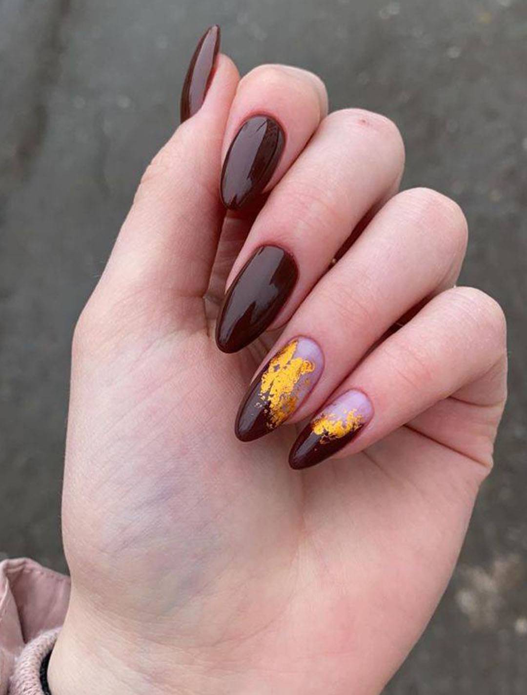 Лаки оттенка вина смотрятся очень стильно и красиво, особенно на ногтях миндалевидной формы или коротких ногтях. Насыщенный винный лак один из самых заметных и ярких трендов прямо сейчас.