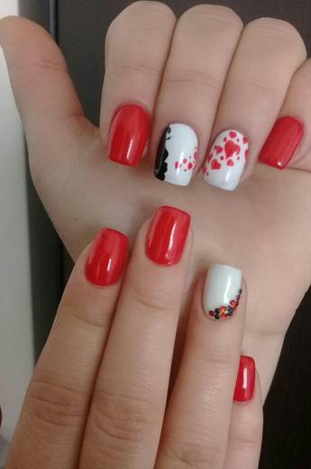 Маникюр с красными акцентами в ретро стилеМаникюр белый с краснымМаникюр с нарисованными красными полосамиМаникюр с красными точками
