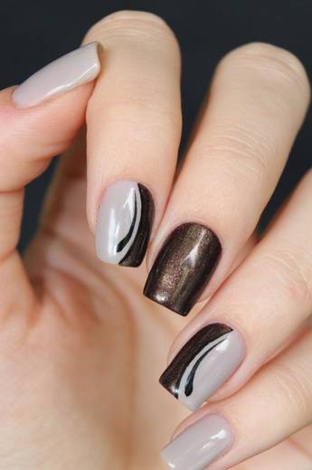 Для создания повседневного маникюра больше подходит светлая цветовая гамма – серые, бежевые, коричневые, кремовые тона.