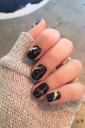- Сделать визуально руки более женственными и легкими можно, нанеся на них дизайн, имитирующий мрамор. Лучше всего подойдут цвета, похожие на оттенки натуральных камней – синий или зеленый, голубой, розовый.