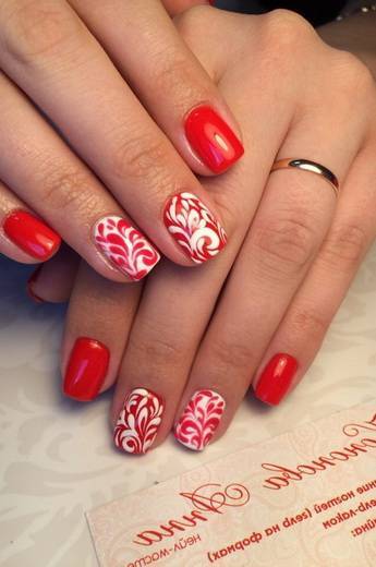 Красные ногти привлекательные, как с дизайном, так и без него. Относительно текстуры ногтей, то лучше смотрится глянцевое покрытие, чем матовое. Во втором случае маникюр может приобретать некоторой вульгарности.