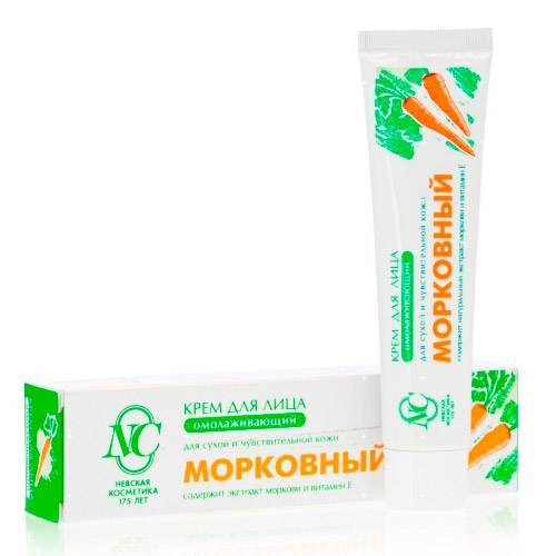 - «Морковный» обладает омолаживающим эффектом. Продукция идеальна для ухода за сухой и чувствительной кожей. В ней есть экстракт моркови, оливковое масло, витамин Е.