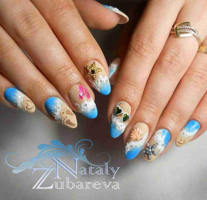 - Выезжая на море, лучше сделать маникюр на морскую тему.