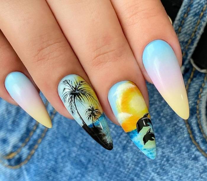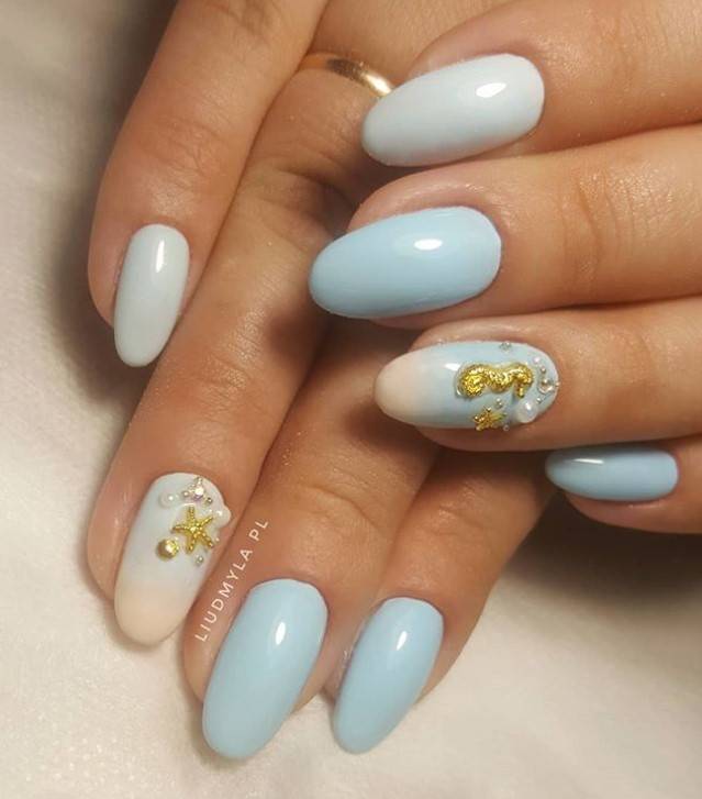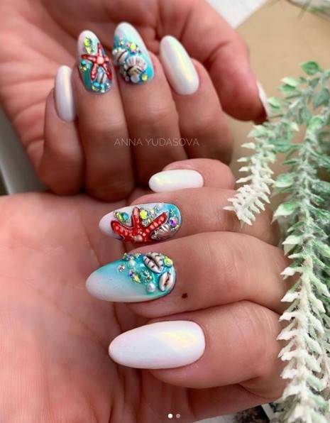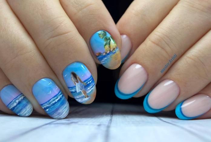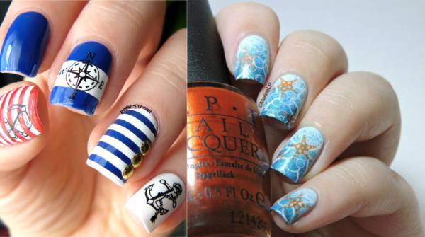 - Выезжая на море, лучше сделать маникюр на морскую тему.