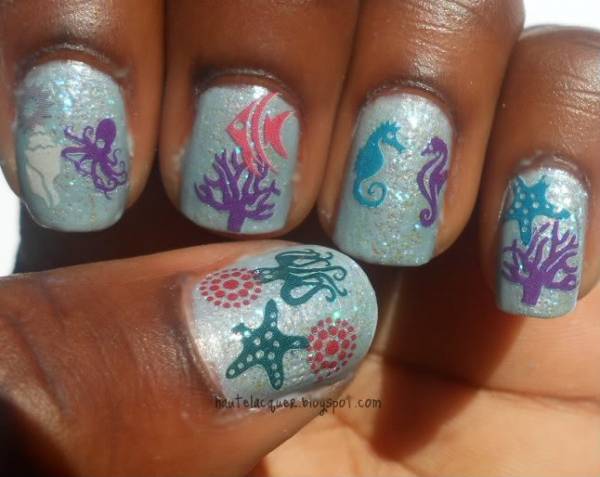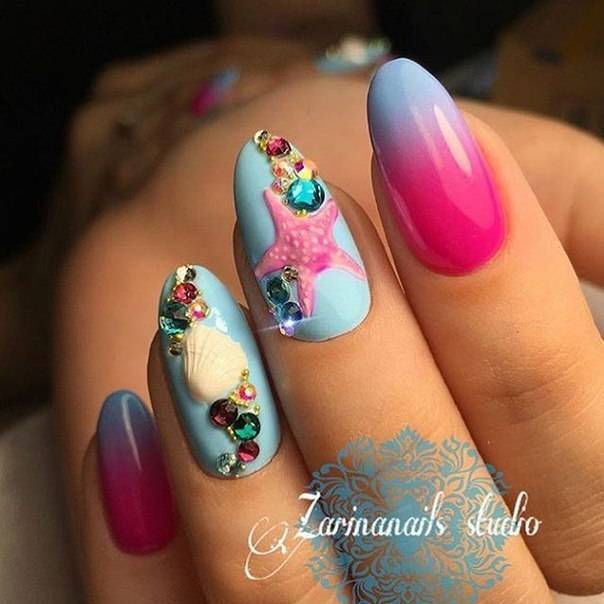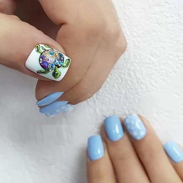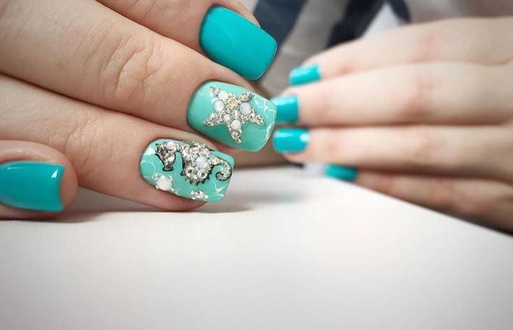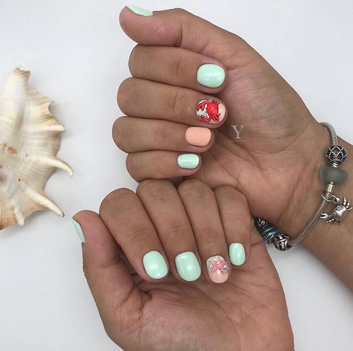 Ваши ноготки станут настоящим произведением искусства, если вы украсите их красивым узором или аппликацией обитателей морских глубин. Вам остается только выбрать, кто это будет: черепаха, морская звезда, краб, коралл или обычный панцирь.