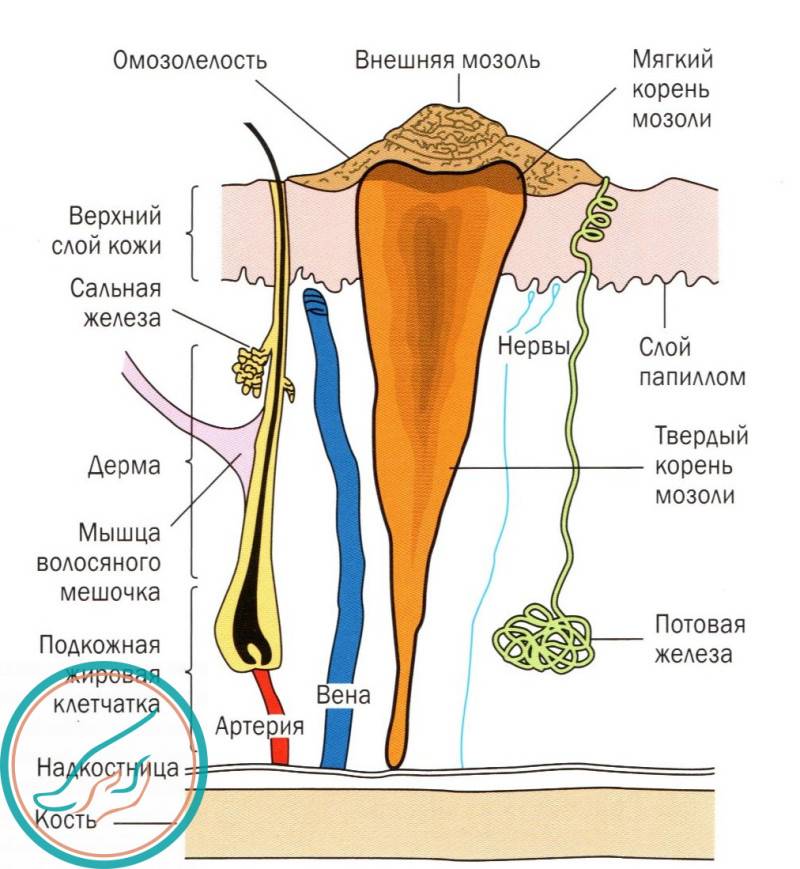Стержневая мозоль может доходить до надкостницы.