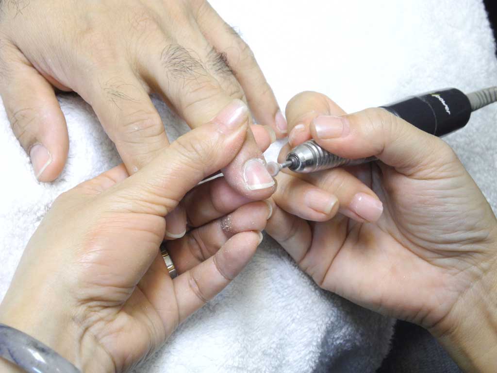 Его выполняют с помощью прибора, похожего на бор-машину стоматолога. В аппарате есть мотор, который заставляет насадку вращаться со скоростью 5-60 тыс. оборотов в минуту. Насадка — это фреза (бор), которой убирают кутикулу, опиливают ноготь, шлифуют его, полируют. Насадки отличаются по форме, диаметру, абразивности, материалу, из которого изготовлены. Все зависит от их назначения. Мастер меняет бор, переходя на другой этап работы.