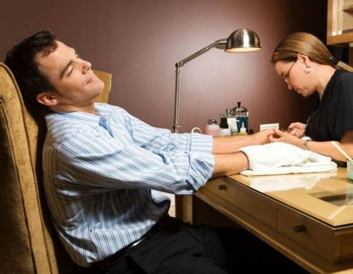 - Для расслабления и релаксации. Если после тяжелого рабочего дня вы хотите расслабиться, успокоиться, тогда попросите супругу (девушку) сделать мужской маникюр в домашних условиях. Массаж рук, являющийся обязательной процедурой во время гигиенического маникюра, дарит отличную разрядку, расслабляет мужчину.