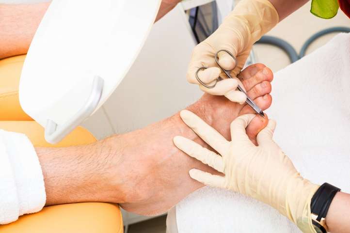 Прежде, чем приступать к работе, на поверхность ног наносится дезинфицирующее средство. После этого на кутикулу обязательно наносится размягчающее средство. Спустя несколько минут остатки убирают полотенцем, а кутикулу отодвигают деревянной или силиконовой палочкой.