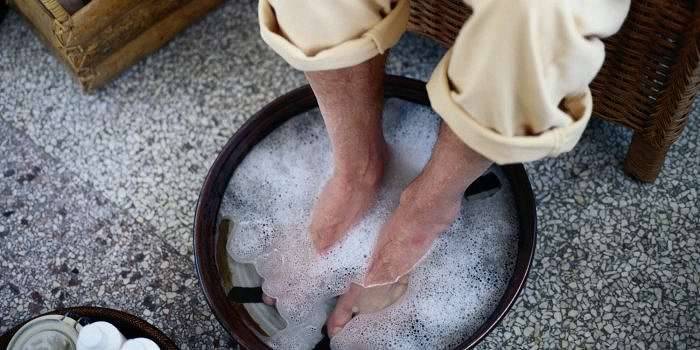 - Распаривание ног водой с добавлением морской соли, смягчающих составов.