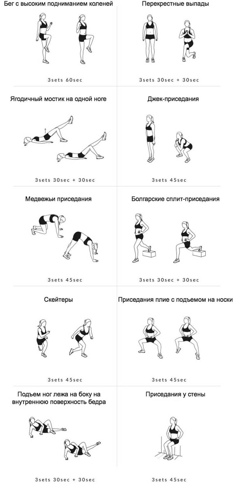 Если стоит цель только улучшить форму ног, используйте данный комплекс. Если работаете над фигурой в целом, включите 3-4 упражнения на ноги в свою программу.