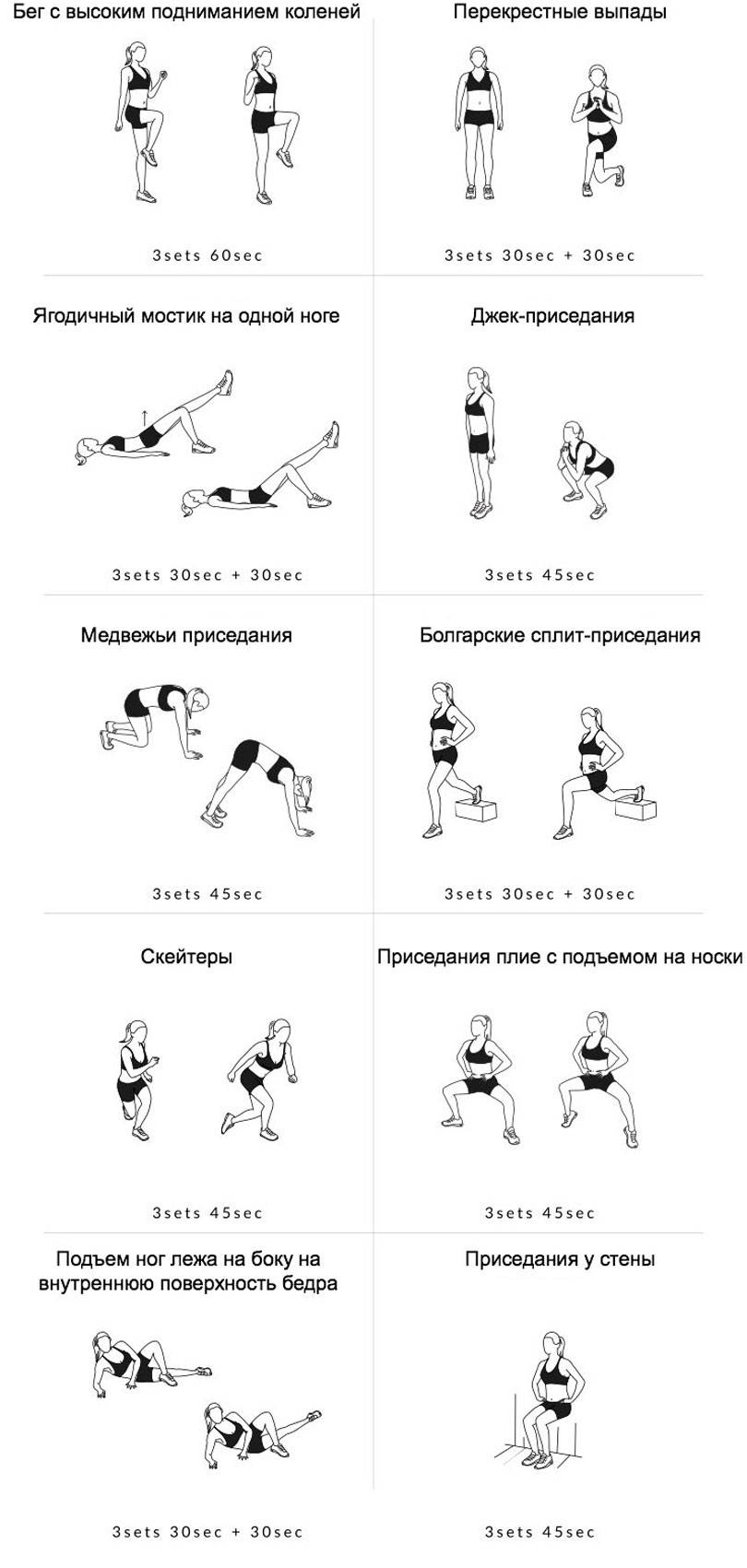 Если стоит цель только улучшить форму ног, используйте данный комплекс. Если работаете над фигурой в целом, включите 3-4 упражнения на ноги в свою программу.
