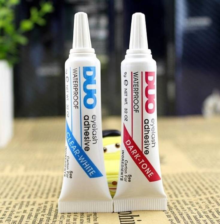 - Duo Adhesive. Ориентирован на фиксацию ленточных ресниц, надежно прикрепляет даже материалы на достаточно жестком основании. В продаже представлен черный вариант, хорошо подходящий под вечерний макияж, а также прозрачный, позволяющий не использовать лайнер.