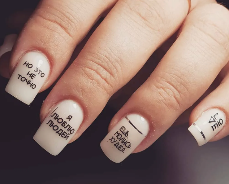 Маникюр с надписями: особенности дизайна