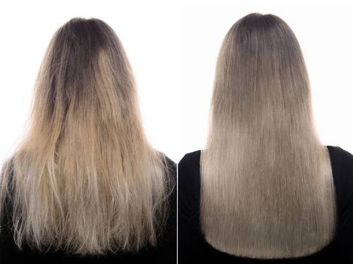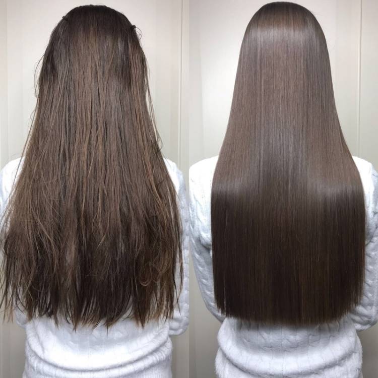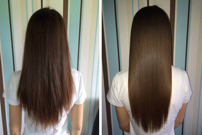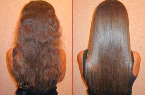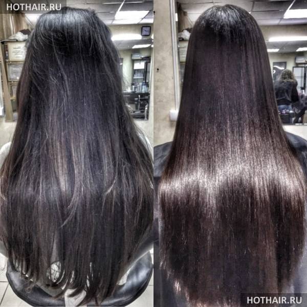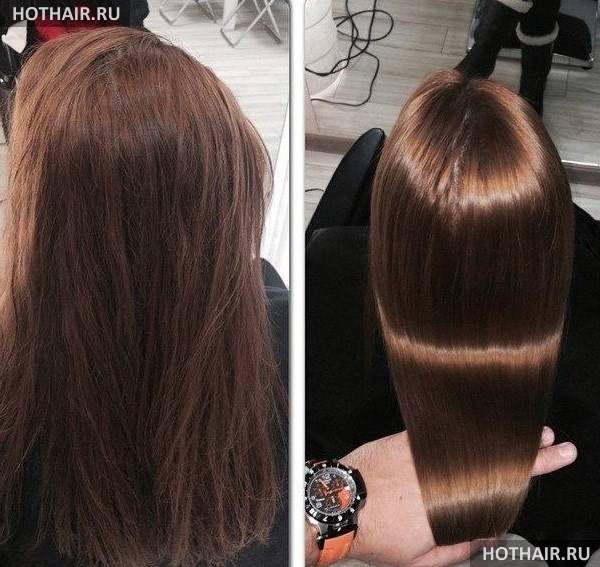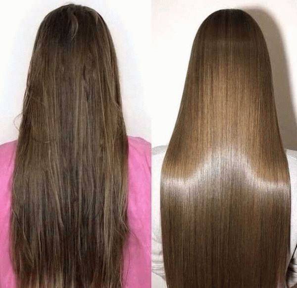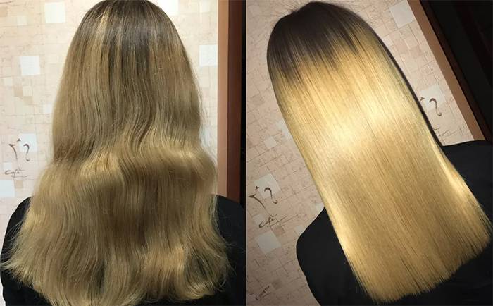 Первая предназначена для оздоровления, ухода за волосами. Эффект достигается за счет заполнения структуры волосков кератином. От этого они станут более гладкими и блестящими.