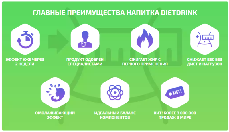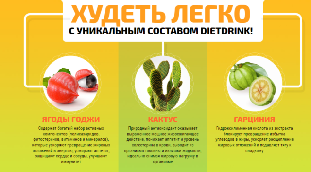 DietDrink для похудения не просто эффективен, он имеет комплексное воздействие на все области, являющиеся причиной полноты и больших объемов