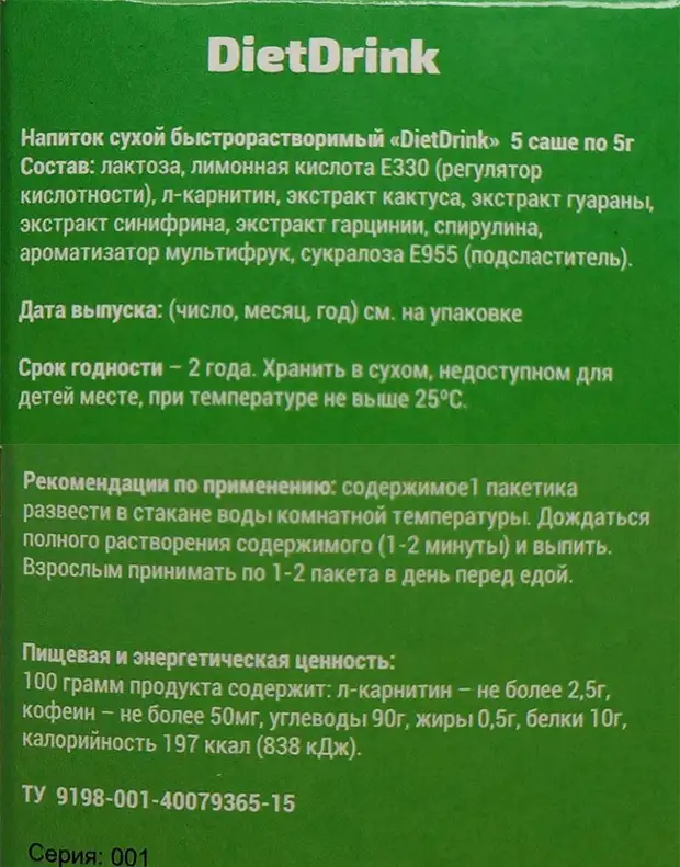Форма выпуска, цена и противопоказания к применению Diet Drink
