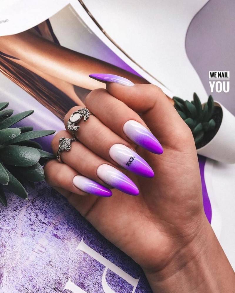 В список распространенных и трендовых вариантов удлиненных жакетов входят и витые французские модели. Необычно и оригинально смотрится на нарощенных ногтях сочетание двух контрастных оттенков, которые наносятся с разных сторон ногтя и встречаются в центре.