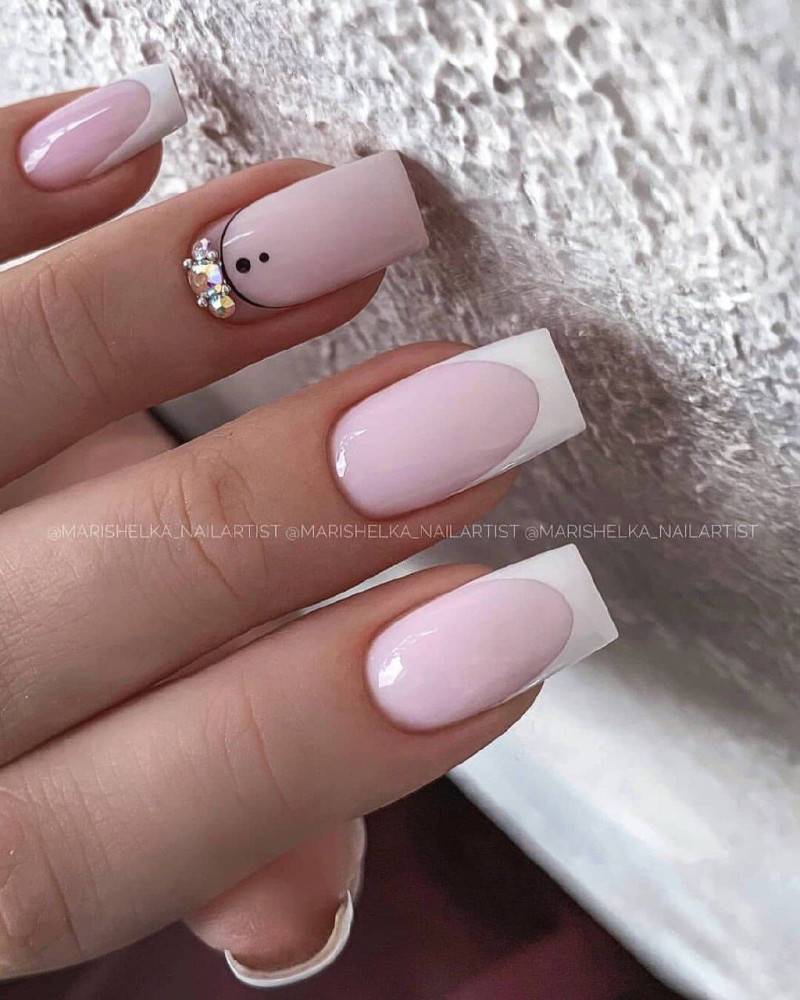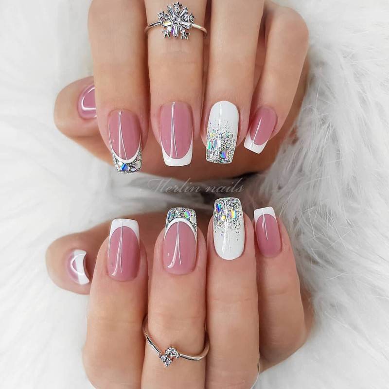 Сочетание цветов и декора в маникюре «френч» квадратной формы