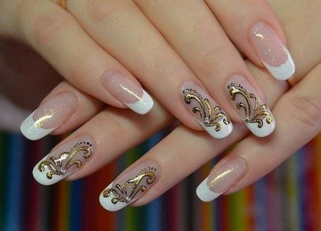 Особенно красивый френч на ногтях создается не только правильной технологией и качественными материалами, а и применением различных декоративных материалов.