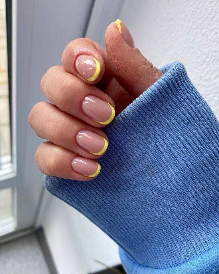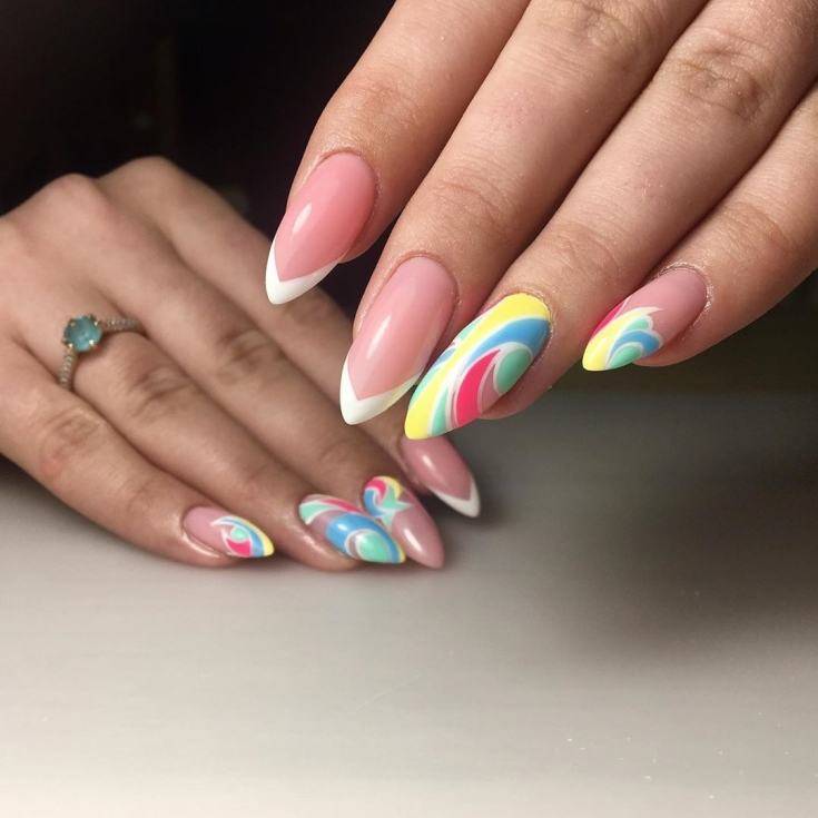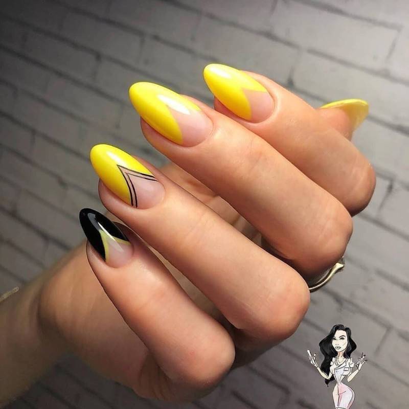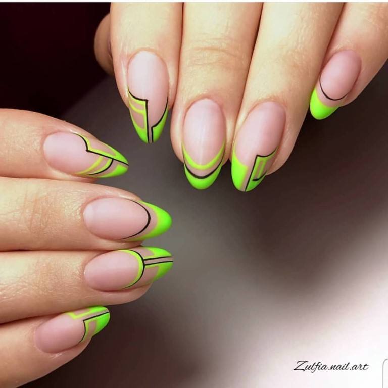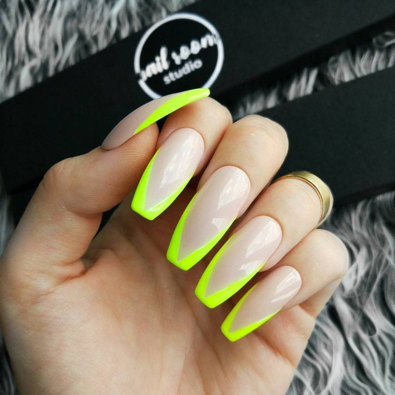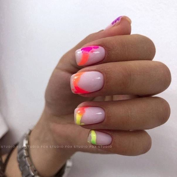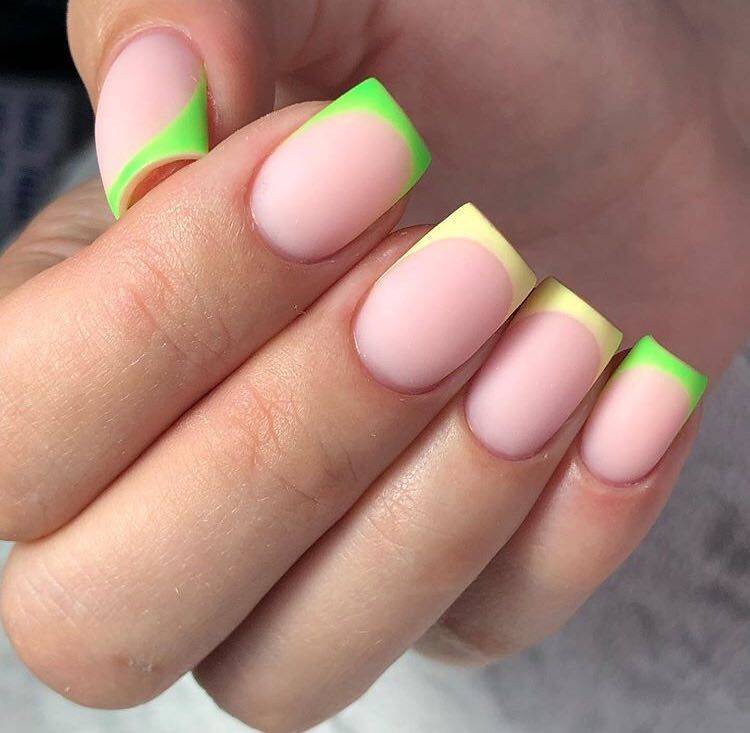 Остается актуальным маникюр френч в неоновых тонах, особенно в летний период. Хит сезона — яркие оттенки желтого, лимонного цвета.