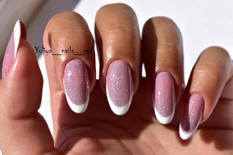 Розовая основа и кончики с блестками добавит образу позитивного настроения.
