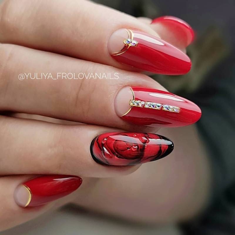 Однако стоит помнить о том, что акцент необходимо делать только на нескольких пальцах, поскольку в противном случае маникюр будет безнадежно испорчен.