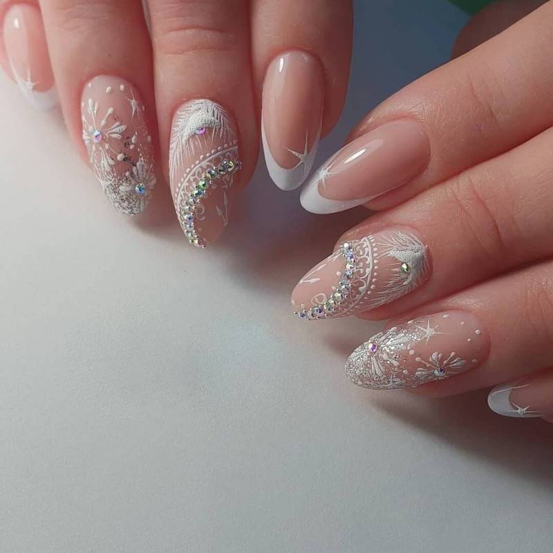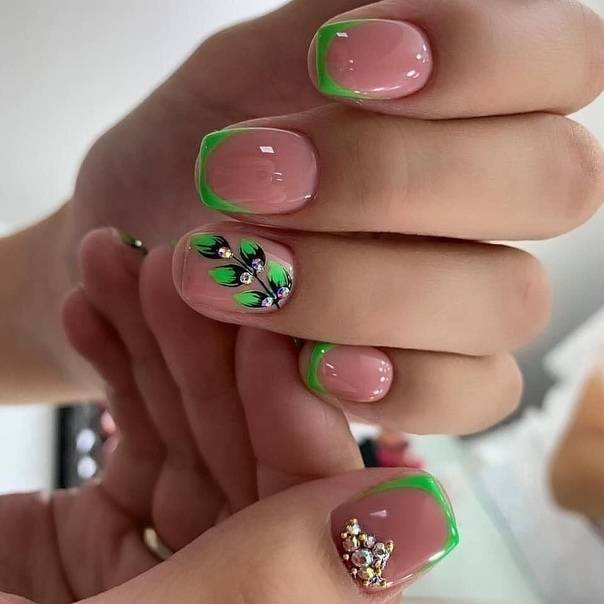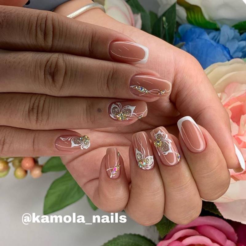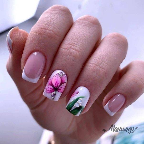 Модный френч с дизайном: интересные рисунки и стильные стразы (фото 2024-2025)