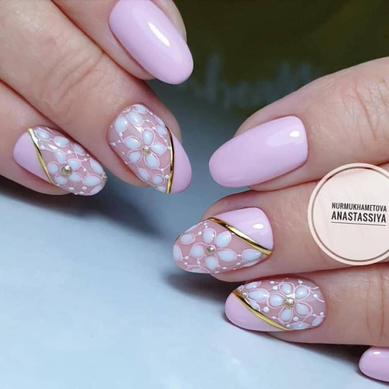 Френч встречается и в других вариациях. Для любого случая подойдет оформление розовым цветом и с орнаментами вышивки.