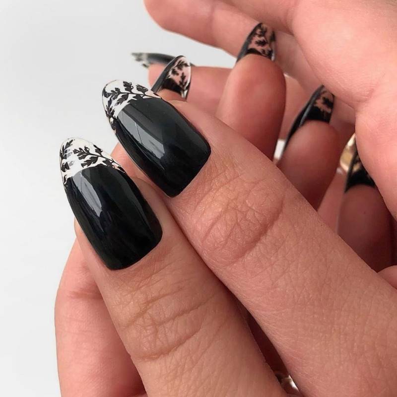 Краешек ногтя оформляется черным или цветным — отличный вариант для праздничного вечера и повседневных будней. Для офисных будней лучше выбирать светлые, нежные оттенки, например перламутровый или розовый.