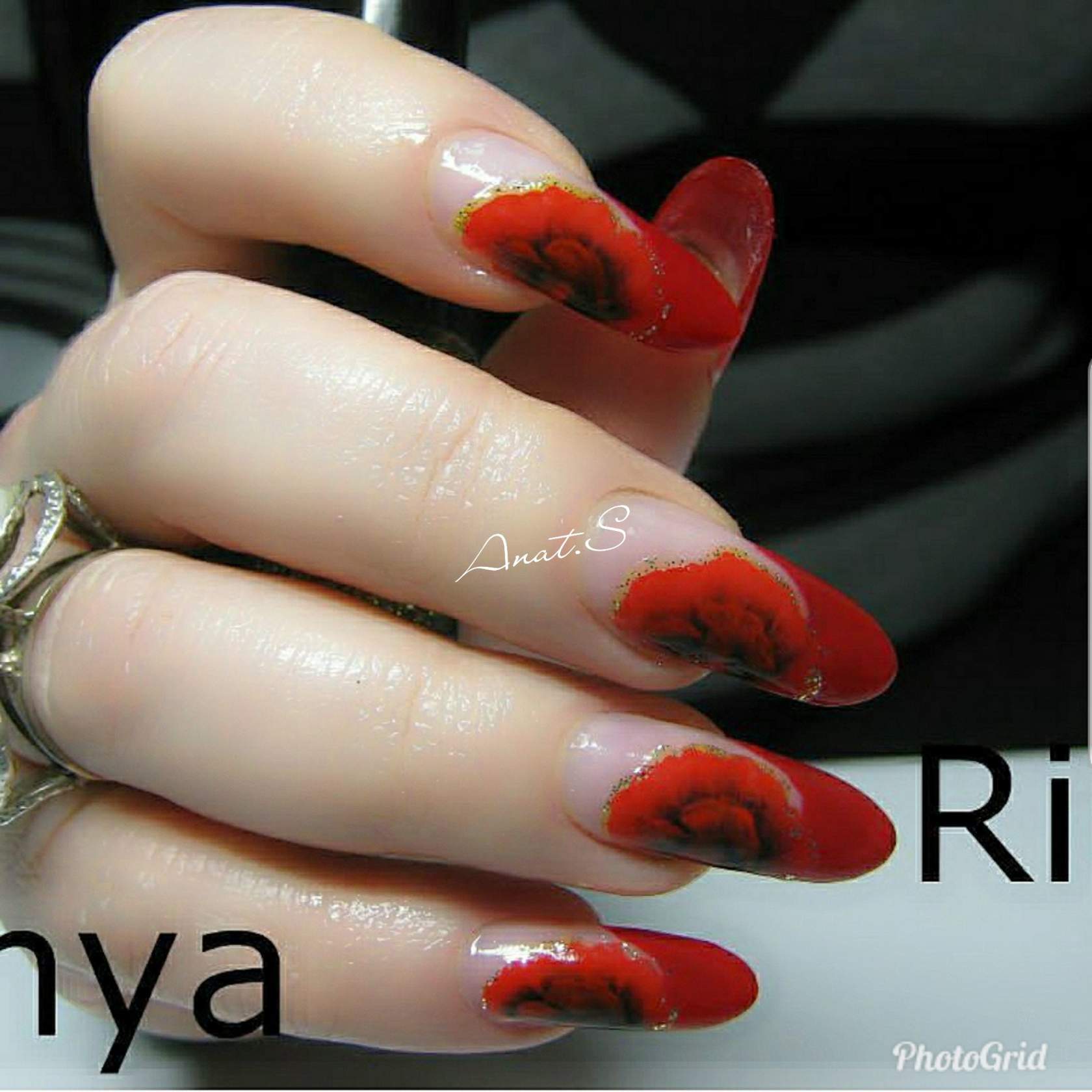 - Рисованное. Это гелевое или акриловое наращивание, при котором по краю ногтевой пластины красками прорисовывается линия «улыбки». Иногда «смайл» создается на наращенных ногтях уже сверху с помощью лака.
