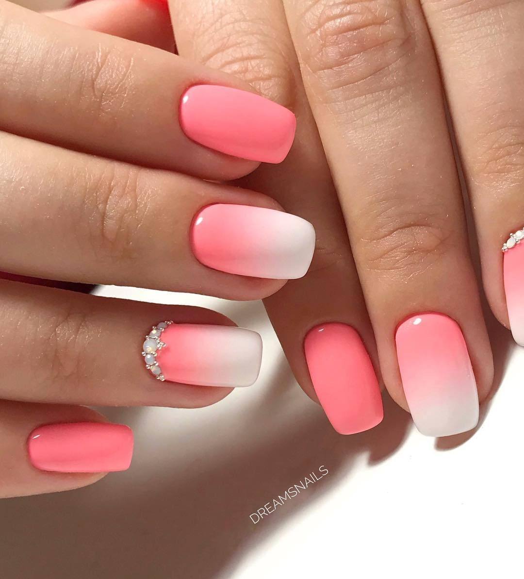 Розовая основа и кончики с блестками добавит образу позитивного настроения.