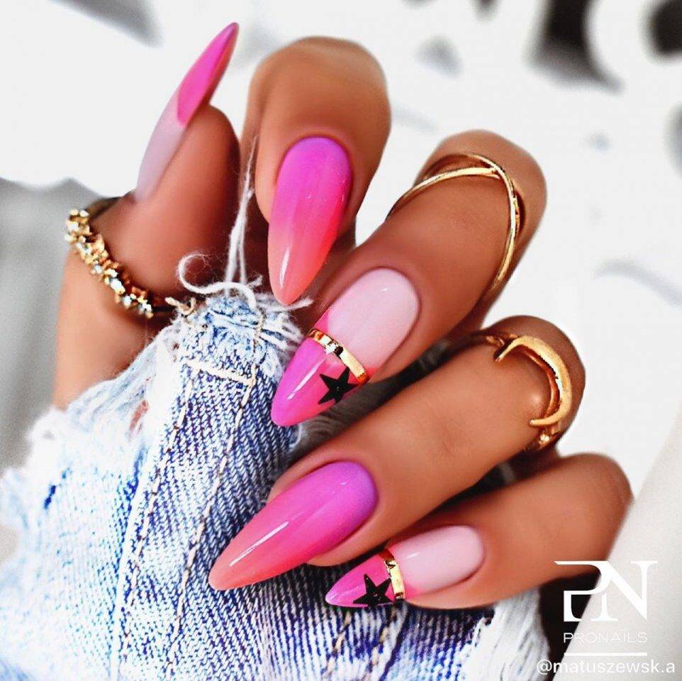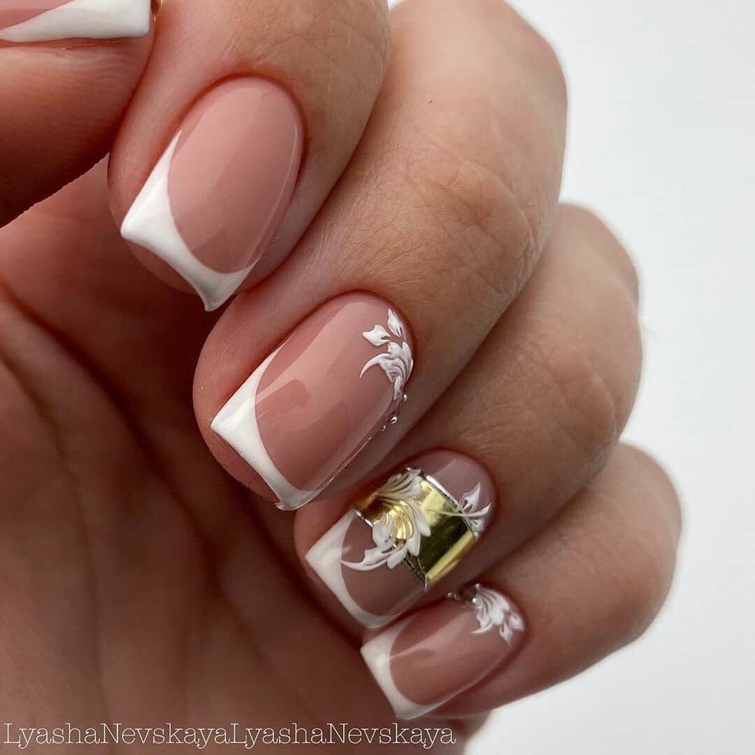 Френч встречается и в других вариациях. Для любого случая подойдет оформление розовым цветом и с орнаментами вышивки.