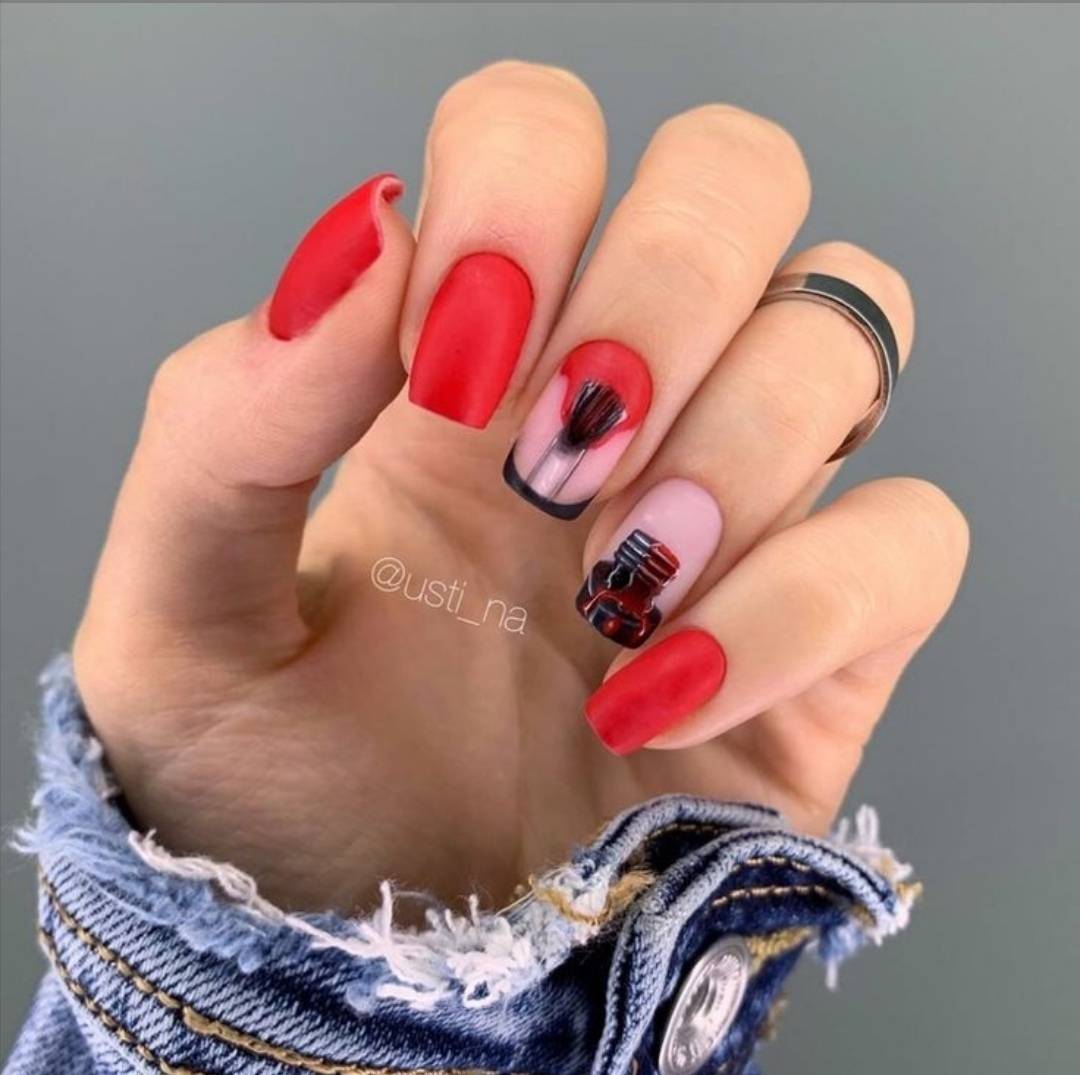 Не обошел его своим вниманием и найл-арт. Преимущественно такой маникюр используют на праздничных мероприятиях, чтобы подчеркнуть торжественность момента