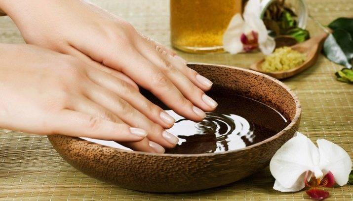 - На третьем, завершающем этапе, пластинкам придают эстетичный вид. Их слегка полируют пилочкой с абразивностью 180×240. Потом ручки опускают в ёмкость с отварами трав или морской солью. Кутикулу покрывают питательным маслом и на руки наносят увлажняющий крем.