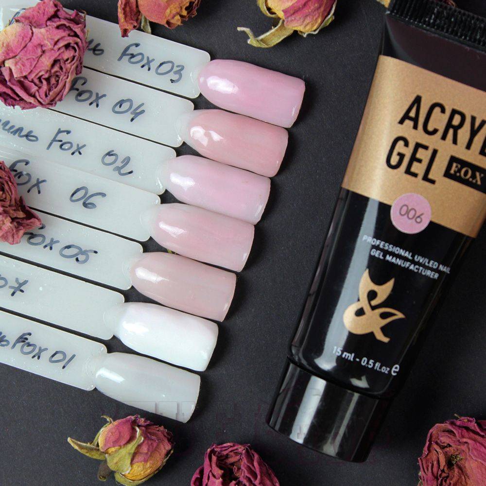- Acryl Gel способен застывать лишь под лампой. Поэтому не стоит опасаться попадания солнечных лучей на открытую баночку с акрилатиком. Это является его преимуществом перед акрилом.