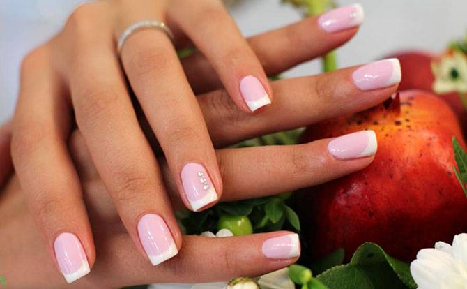 В классическом исполнении французский маникюр выглядит так: ноготь имеет бледно-розовый или бежевый оттенок, а его кончик окрашен в белый цвет. В последнее время наметилась тенденция оформлять такое моделирование по-разному. Обо всех нюансах создания французского маникюра методом искусственного удлинения мы и расскажем в этой статье.