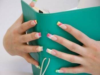 В этом сезоне будет популярен яркий маникюр с разнообразными красками, рисунками, украшениями. Зеленый, малиновый, синий, красный добавит хорошего настроение – именно эти краски можно использовать во френч маникюр.