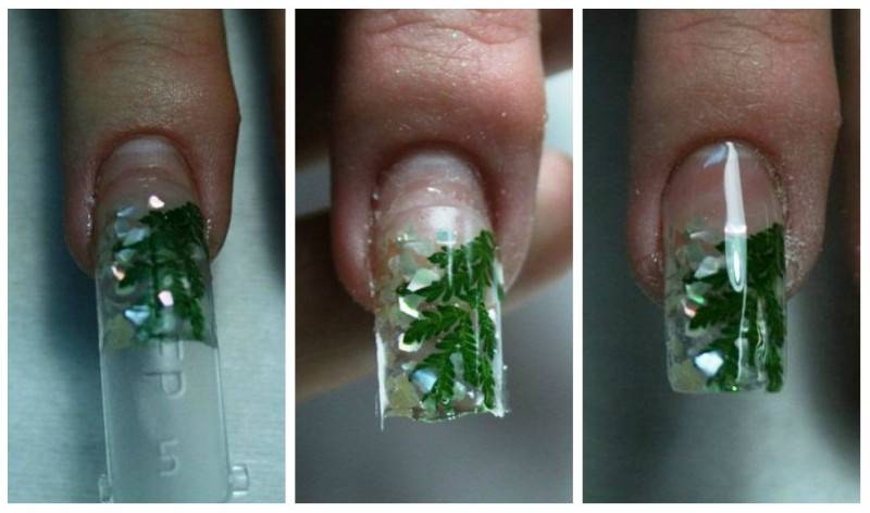 - Метод дает возможность nail-мастерам исполнять сложные 3D дизайны, выкладывать аквариумный дизайн так, чтобы ни один декоративный элемент не уходил в опил.