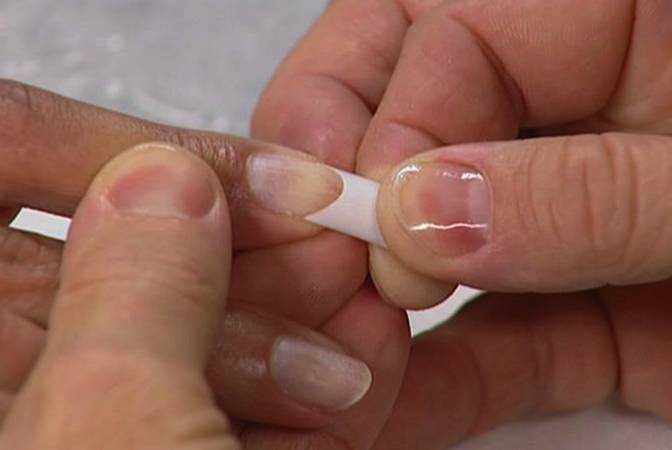 - вырезание из файбергласса или шелка лоскутков по форме ногтей;