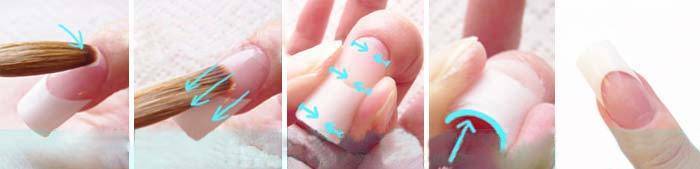 - наклеивание нового слоя и т.д. Необходимо, чтобы ноготь покрылся несколькими слоями материала;