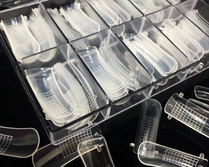 Верхние формы – многоразовые изделия из мягкого пластика, которые имитируют ногтевую пластину. Чтобы выполнить наращивание, материал наносят внутрь формы, а затем отпечатывают на натуральных ногтях.