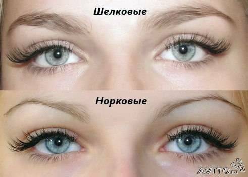 Шелк и норка отличаются только своим составом. Шелковые ресницы глянцевые сами по себе, более легкие, но менее черные, и менее эластичные. Норка же — это черные ресницы, мягче, эластичнее, но чуть тяжелее. Хотя на данный момент, норковые ресницы делают очень легкими. Есть еще соболь — мягкие, легкие, очень эластичные.