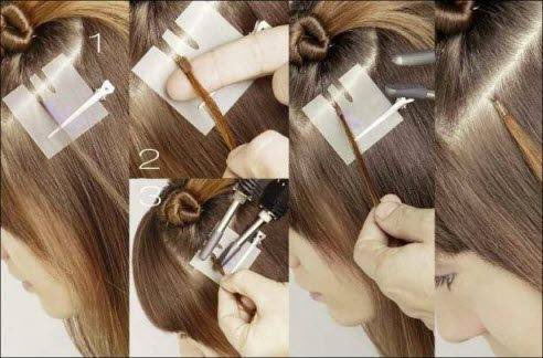 Для самостоятельного проведения специалисты рекомендуют ленточную технологию . Капсульная и ультразвуковая довольно сложны, а действуя по японской методике, можно испортить свои локоны неправильным применением щипцов и колечек. Чтобы нарастить пряди на лентах, действуйте так: