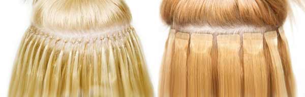 - Удлинение лентами – на корни волос приклеивают готовую ленту с прикрепленным рядом волос. Ленточное наращивание волос делают быстро и недорого, но этот вариант считается не очень качественным и подходит для недолгого использования. Прическу с такими локонами нужно делать тщательно, чтобы не было видно мест приклеивания волос.