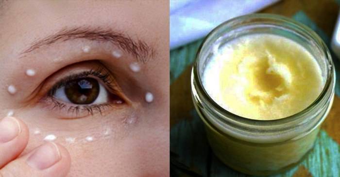 В качестве ночного крема используется еще одно народное средство от морщин вокруг глаз — сливочное масло. Вбивайте его в кожу кончиками пальцев, нежно постукивая. Масло оставьте на коже вокруг глаз, чтобы оно впитывалось в течение ночи.