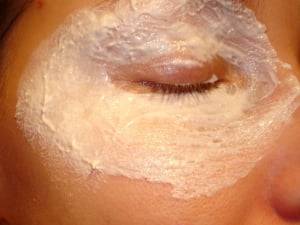 - Смесь наносят вокруг глаз.