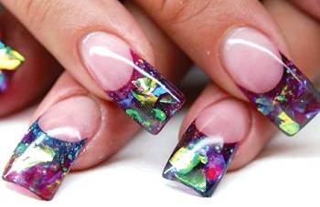 Витражный французский маникюр делается с помощью прозрачных материалов. Как правило, кончик ногтя делается довольно длинным, чтобы цветные прозрачные гели можно было украсить блестками, стразами, прорисовками, микропылью.
