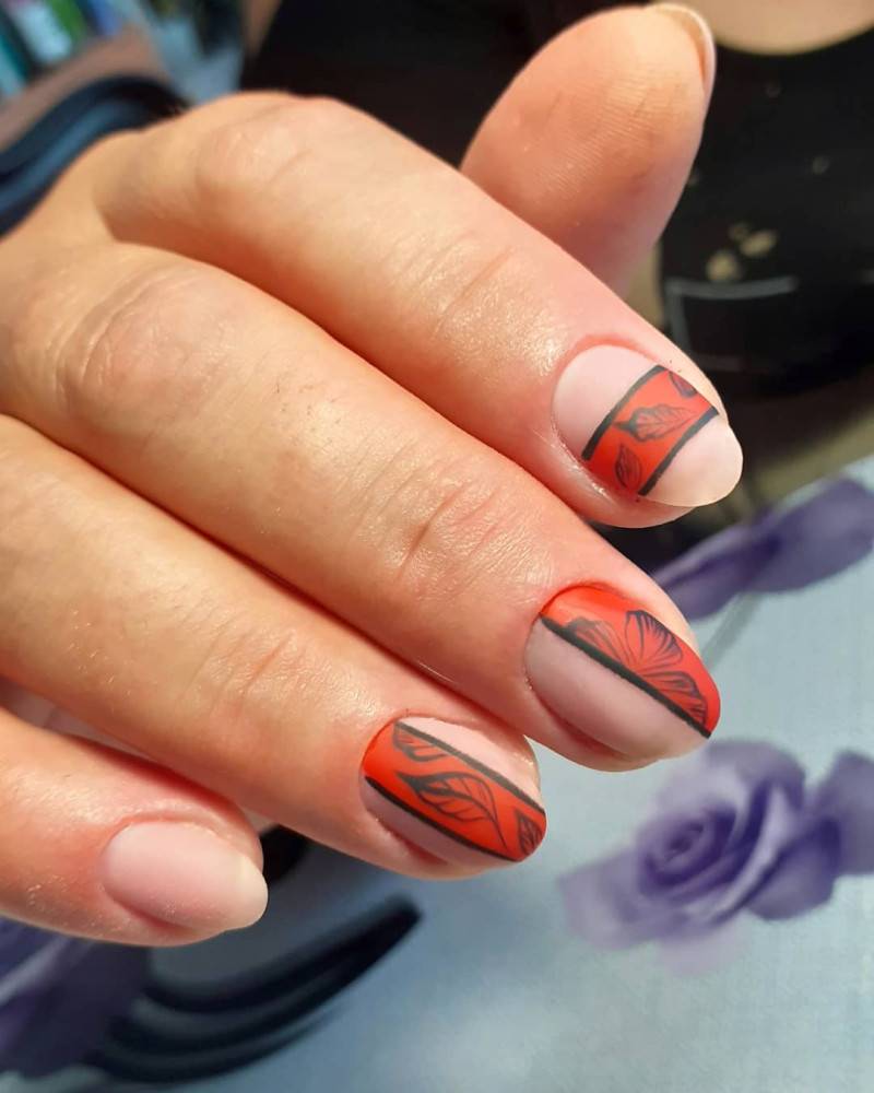 - Проводить манипуляции нужно постепенно, поэтапно нанося гель-лак на каждый ноготь, а затем высушивая его. Если вы будете сразу наносить контрастный оттенок на все пальцы, есть риск, что где-то он начнет течь, а где-то вы его случайно сотрете рукой.