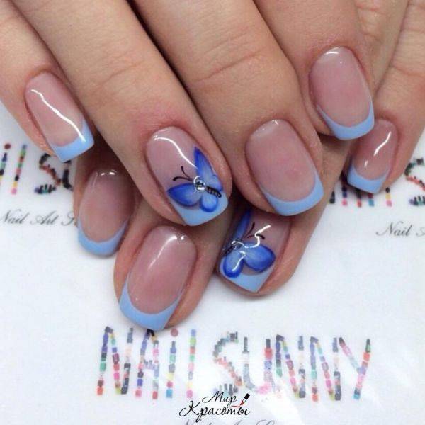 Вместо белого кончика нанесите яркие красный, желтый, оранжевый, голубой, золотой, они напомнят разнообразие летних оттенков и, естественно, привлекут внимание к вам. Можно декорировать росписью все ногти либо один палец на руке
